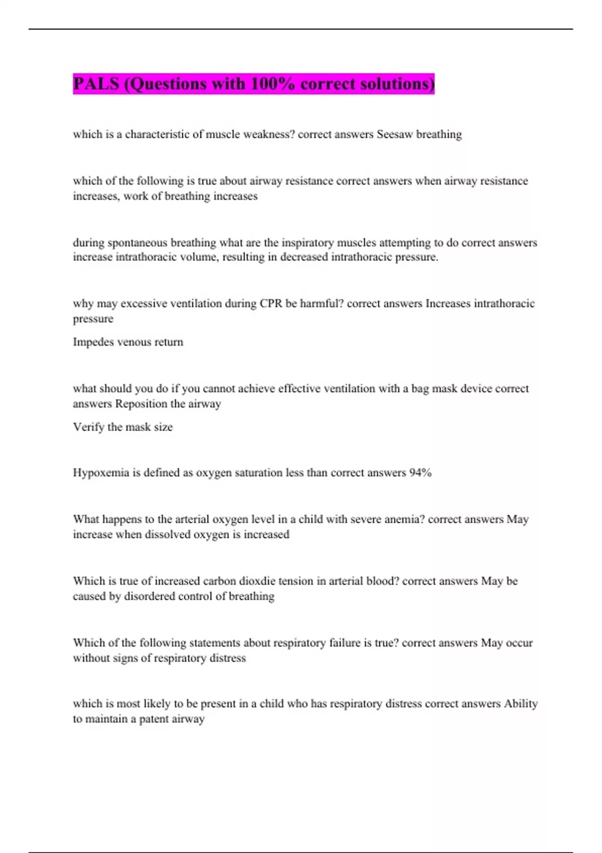 PALS (Questions with 100% correct solutions)