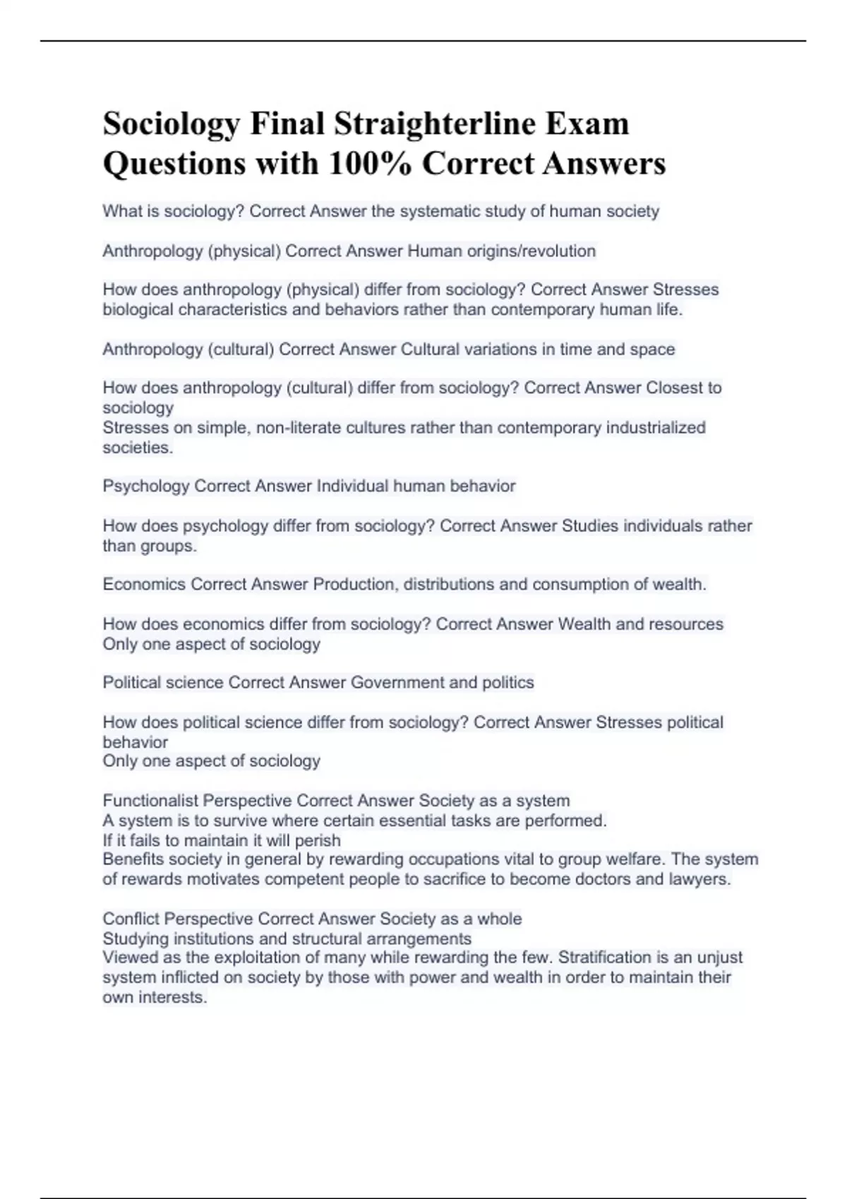 Sociology Final Straighterline Exam Questions with 100% Correct Answers