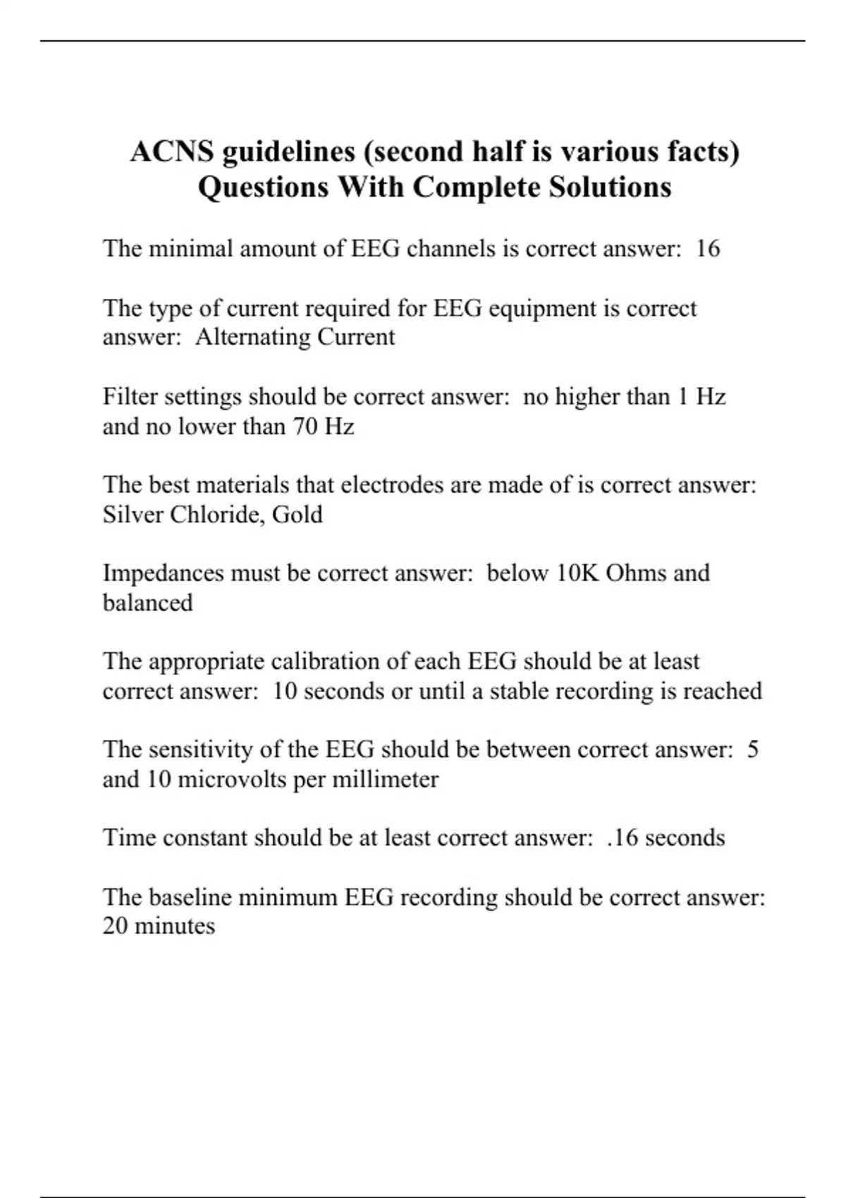 ACNS guidelines (second half is various facts) Questions With Complete Solutions