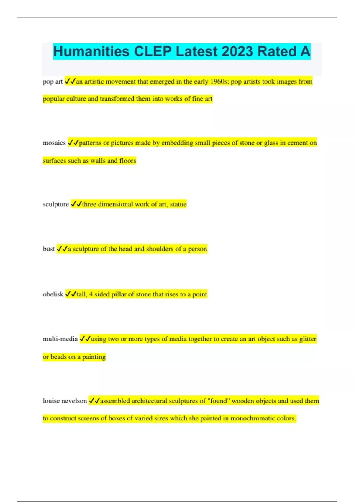 humanities clep latest 2023 rated a