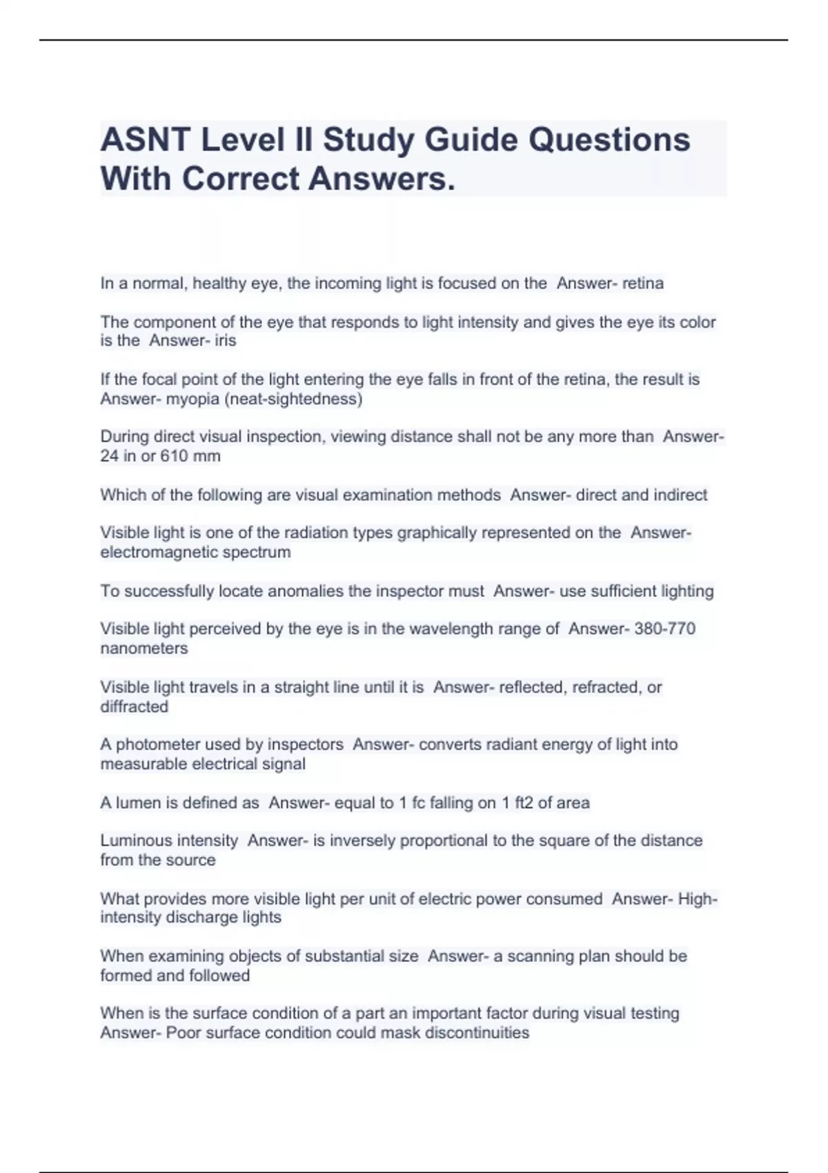 ASNT Level II Study Guide Questions With Correct Answers.