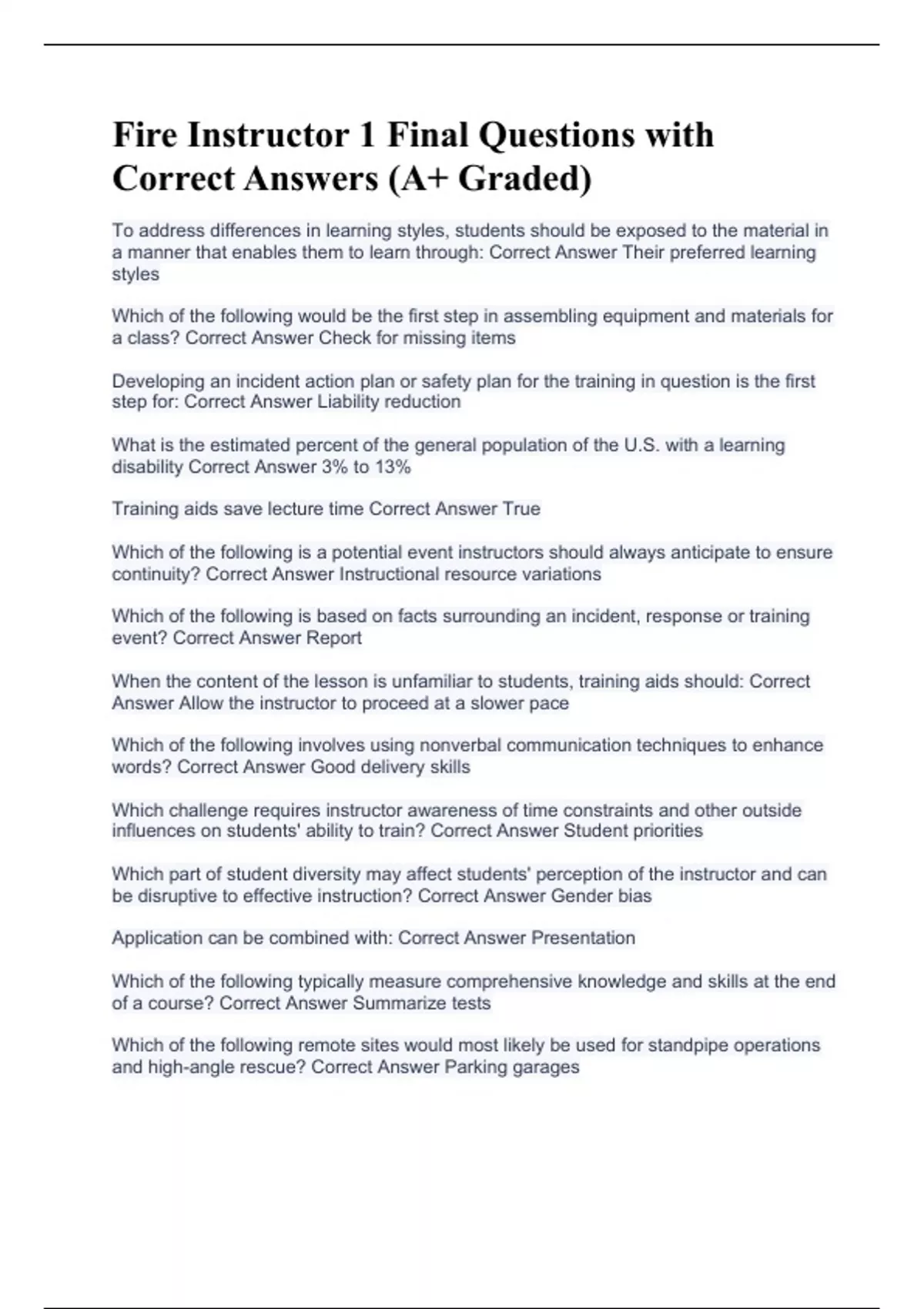 Fire Instructor 1 Final Questions with Correct Answers (A+ Graded)