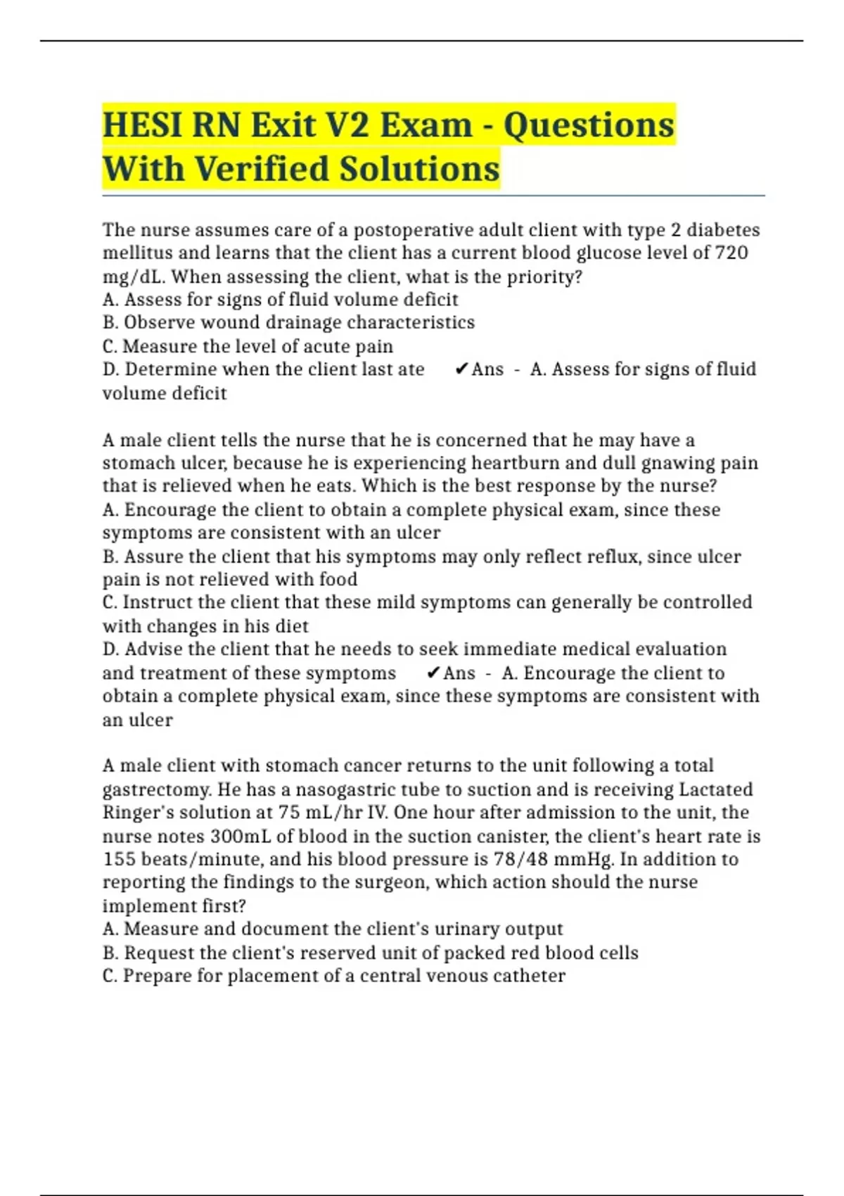 HESI RN Exit V2 Exam - Questions With Verified Solutions