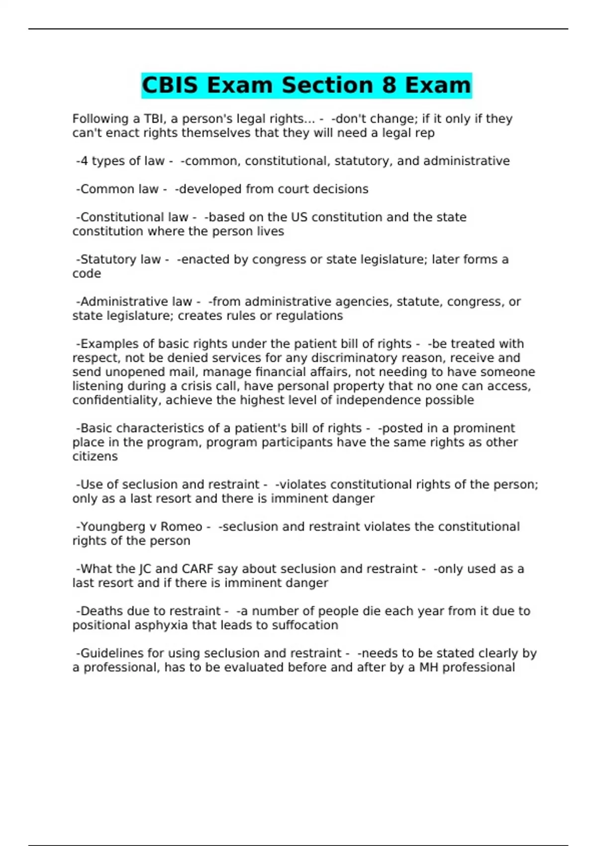 CBIS Exam Section 8 Exam