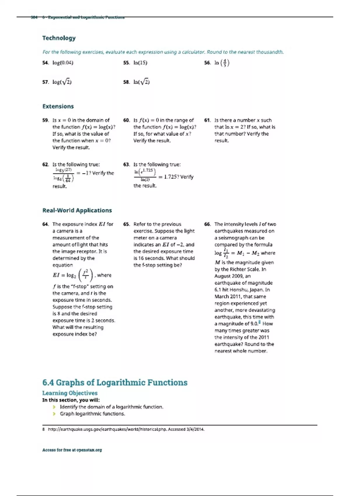 In this meticulously structured chapter, titled "6.4 Graphs of Logarithmic Functions," readers embark on a comprehensive exploration of the intricate world of logarithmic functions and their graphical representations. This chapter serves as a vital link between mathematical theory and visual interpretation, providing learners with the tools to understand, analyze, and utilize logarithmic functions graphically. The chapter commences by introducing logarithmic functions and their fundamental characteristics. Readers will gain a deep understanding of how logarithmic functions differ from other types of functions and how their graphs exhibit unique behaviors. Meticulous attention is given to graphing logarithmic functions, including understanding the effects of varying parameters such as the base and transformations. Through detailed explanations and step-by-step examples, readers will master the art of creating precise graphs that visually represent the behavior of logarithmic functions. Furthermore, the chapter explores the relationship between logarithmic and exponential functions, emphasizing how their graphs are inversely related. This insight provides a valuable perspective on the behavior of logarithmic functions and their significance in various scientific and mathematical contexts. Practical applications of logarithmic function graphs are highlighted throughout the chapter, demonstrating their utility in tasks such as modeling population growth, analyzing data trends, and understanding the principles of logarithmic scales in fields ranging from biology to economics. To reinforce understanding, a wealth of exercises and problems are thoughtfully integrated throughout the chapter. These exercises challenge readers to apply their knowledge of logarithmic function graphs in diverse mathematical scenarios, fostering problem-solving skills that transcend the confines of the classroom. "6.4 Graphs of Logarithmic Functions" stands as an indispensable resource for learners seeking a comprehensive understanding of logarithmic functions and their graphical representations. Its meticulous exploration of graphing techniques equips readers with the tools necessary to interpret and utilize logarithmic functions graphically, making it an invaluable asset in mathematics education.