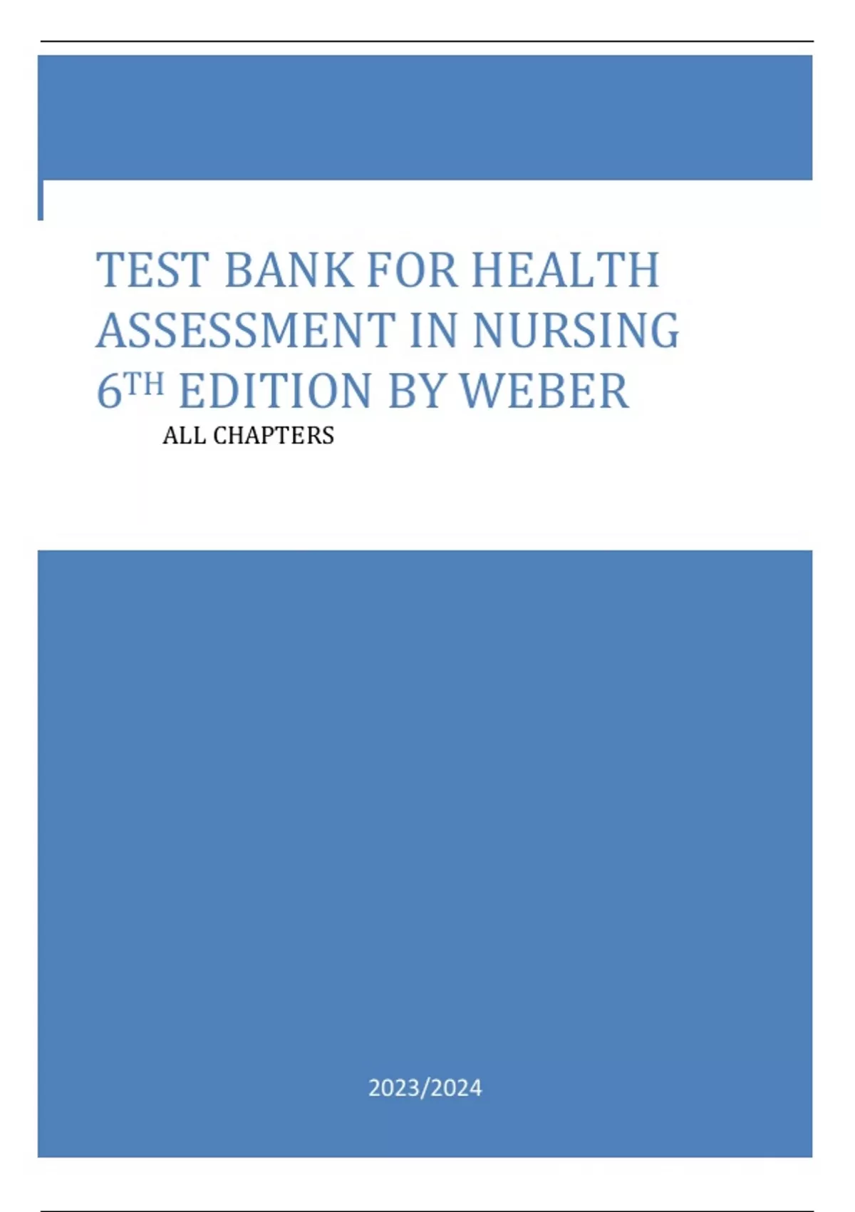 Test Bank For Health Assessment in Nursing 6th Edition by Weber All Chapters. Test Bank For Health Assessment in Nursing 6th Edition by Weber All Chapters. Test Bank For Health Assessment in Nursing 6th Edition by Weber All Chapters.