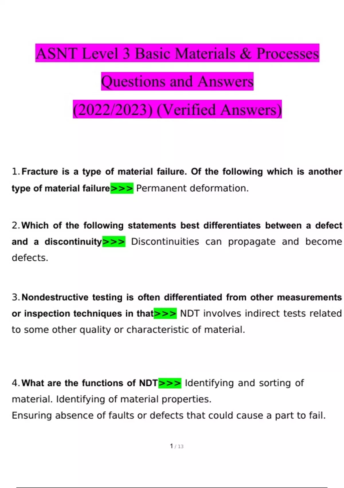 ASNT Level 3 Basic Materials & Processes Questions and Answers 2022/2023