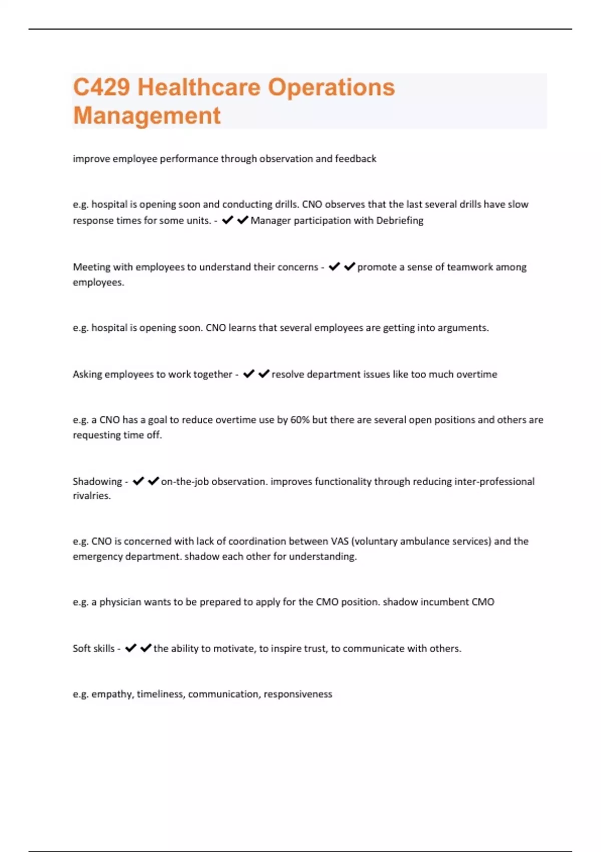C429 Healthcare Operations Management test Questions With 100% Correct Solutions.