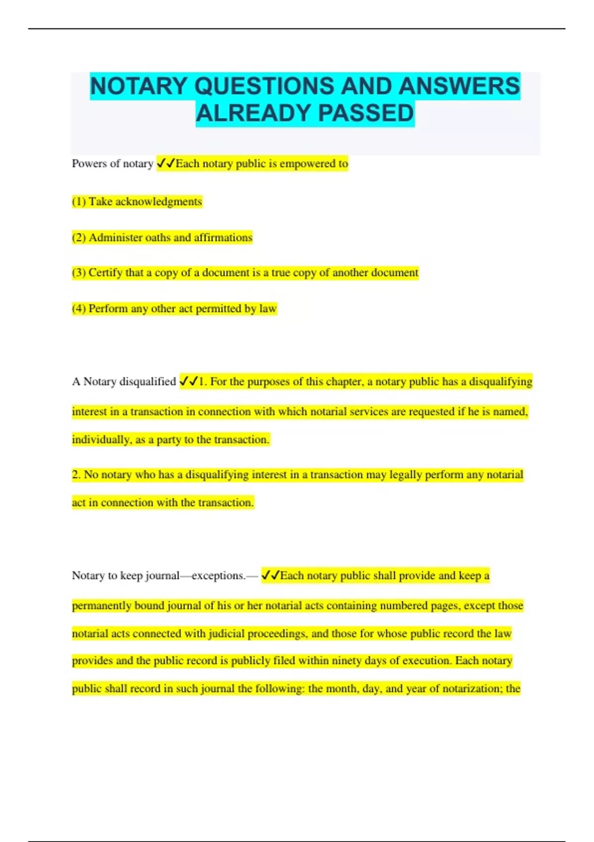 NOTARY QUESTIONS AND ANSWERS ALREADY PASSED