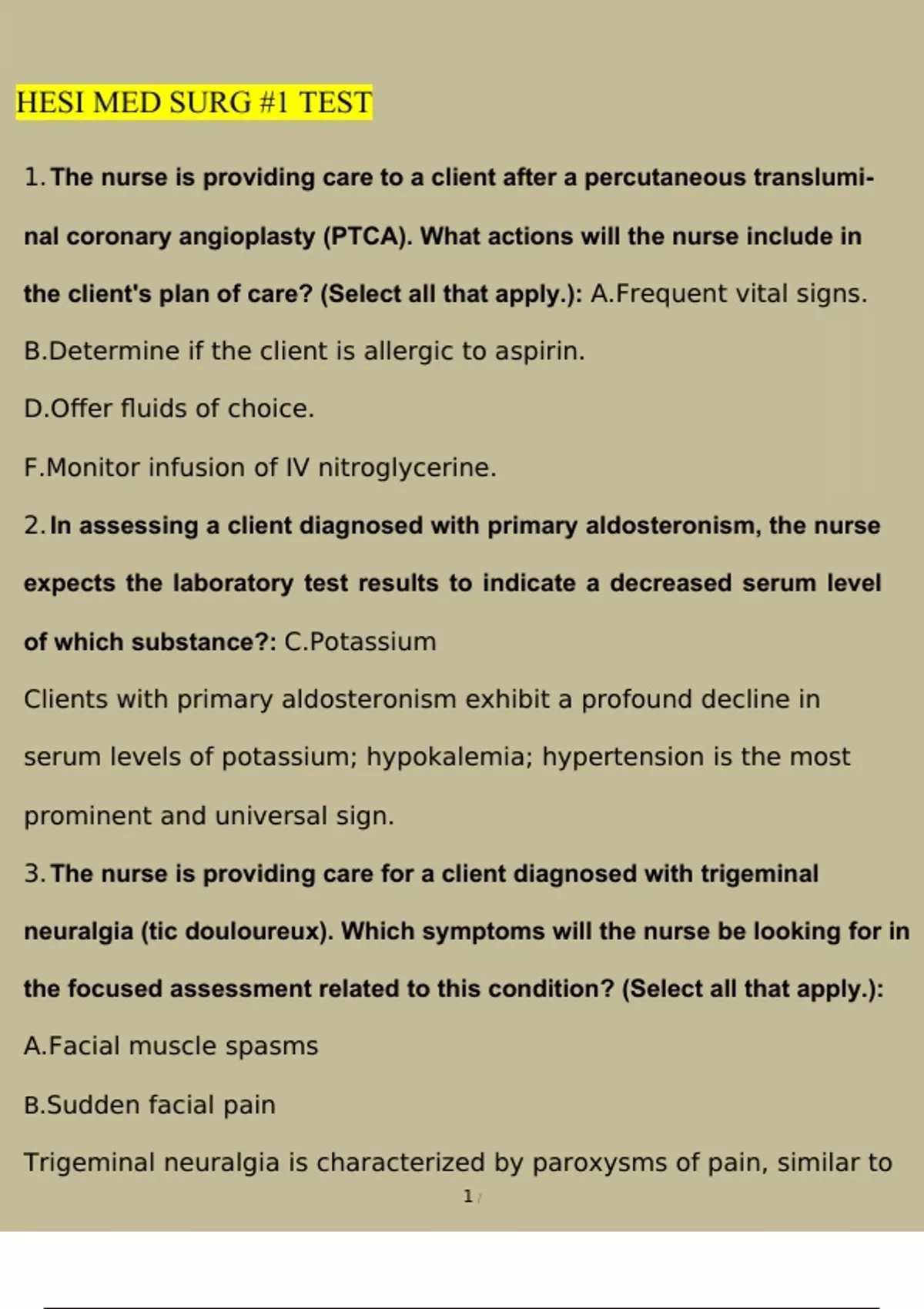 (Complete 320 Q&A ) HESI Med Surg I Test Bank