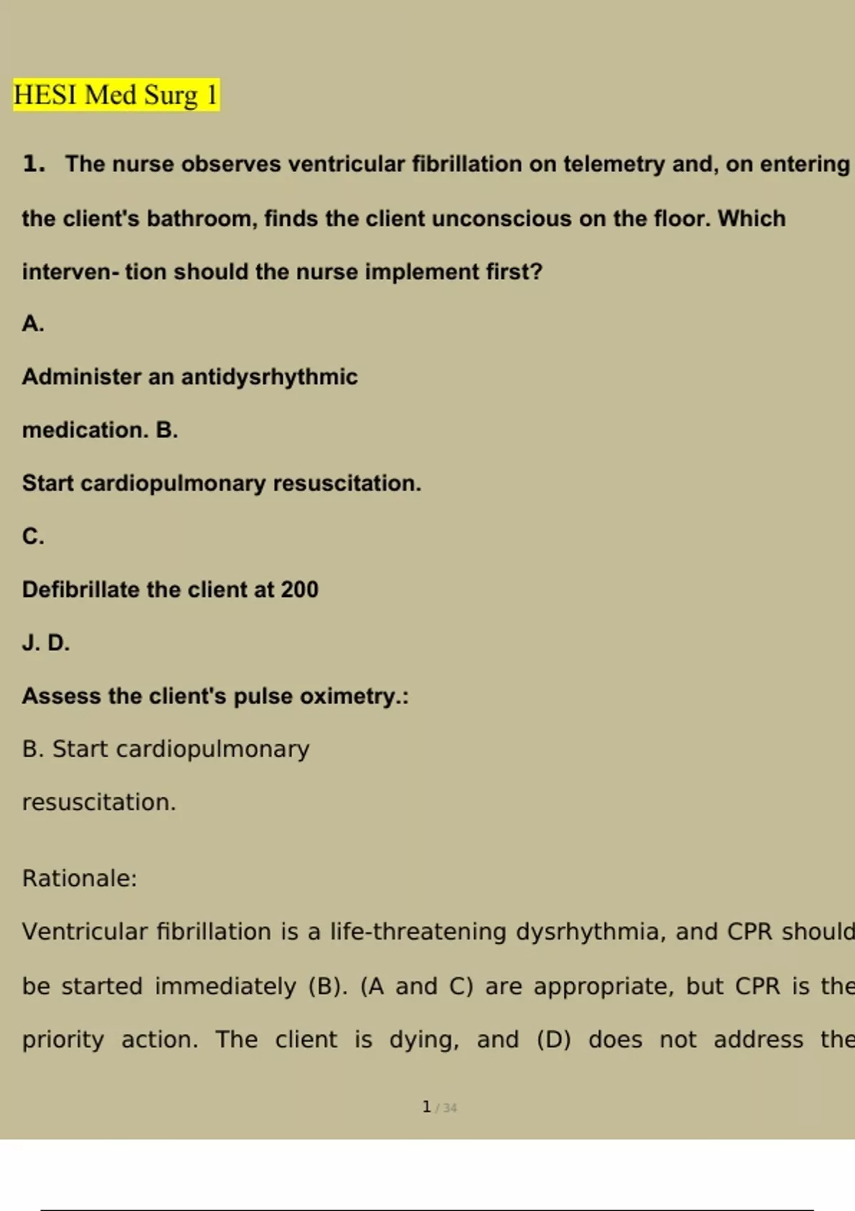 HESI Med Surg 1 Questions and Answers Latest (2023 / 2024) (Verified Answers)