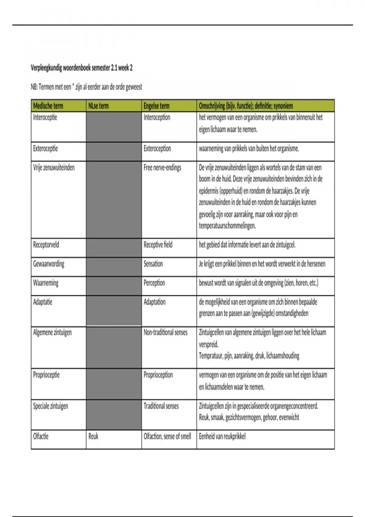 Woordenboek week 2 + Uitwerking Leerdoelen van semester 1 jaar 2