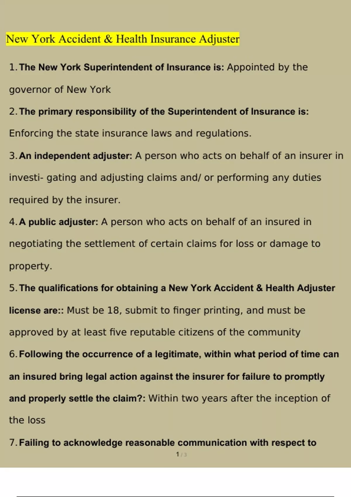 PSI - NY Life, Accident and Health Insurance Adjust Questions and Answers Latest (2023 / 2024) (Verified Answers)