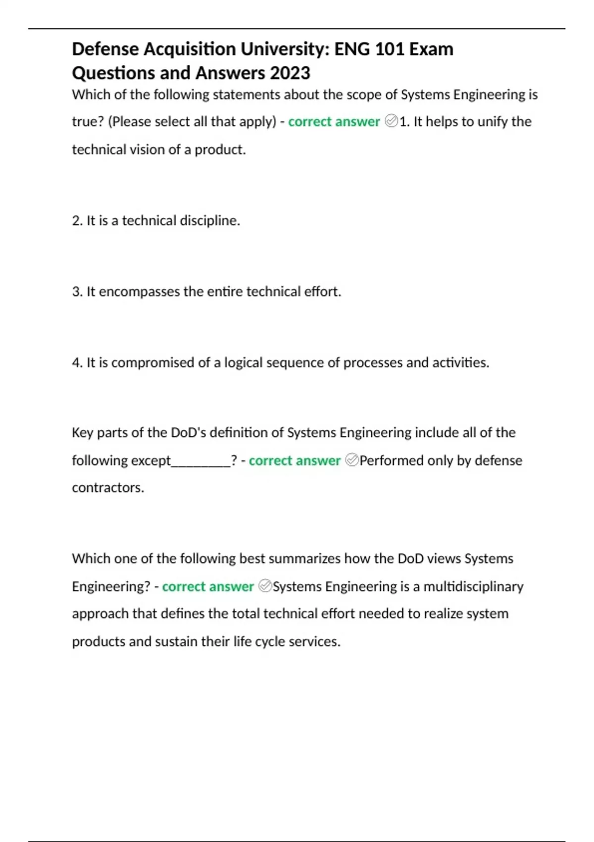 Defense Acquisition University ENG 101 Exam Questions and Answers (Latest Update).docx
