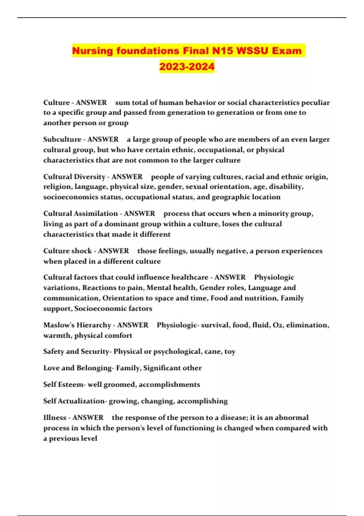 Nursing foundations Final N15 WSSU Exam ...