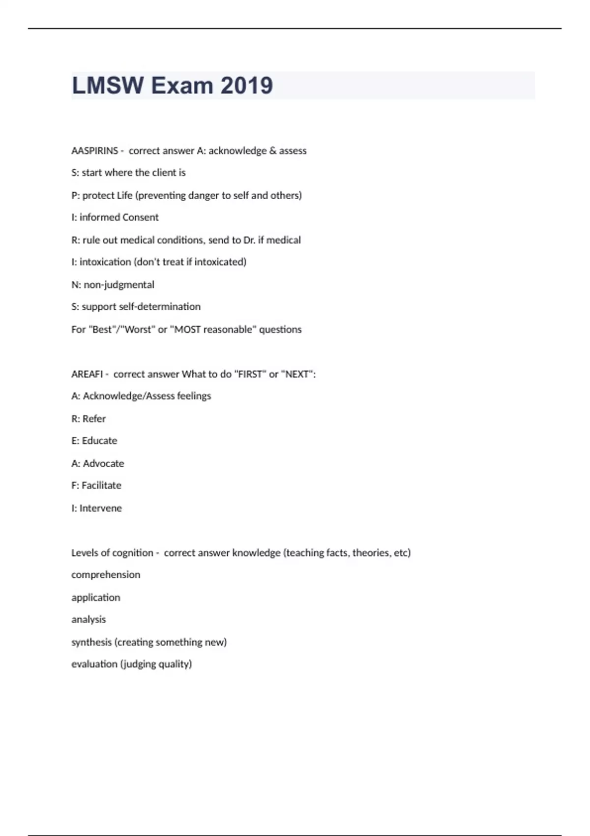 LMSW Exam 2019 updated to pass