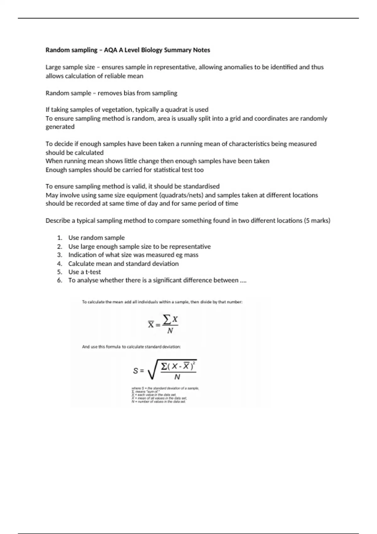 Summary notes on Random Sampling - AQA A Level Biology