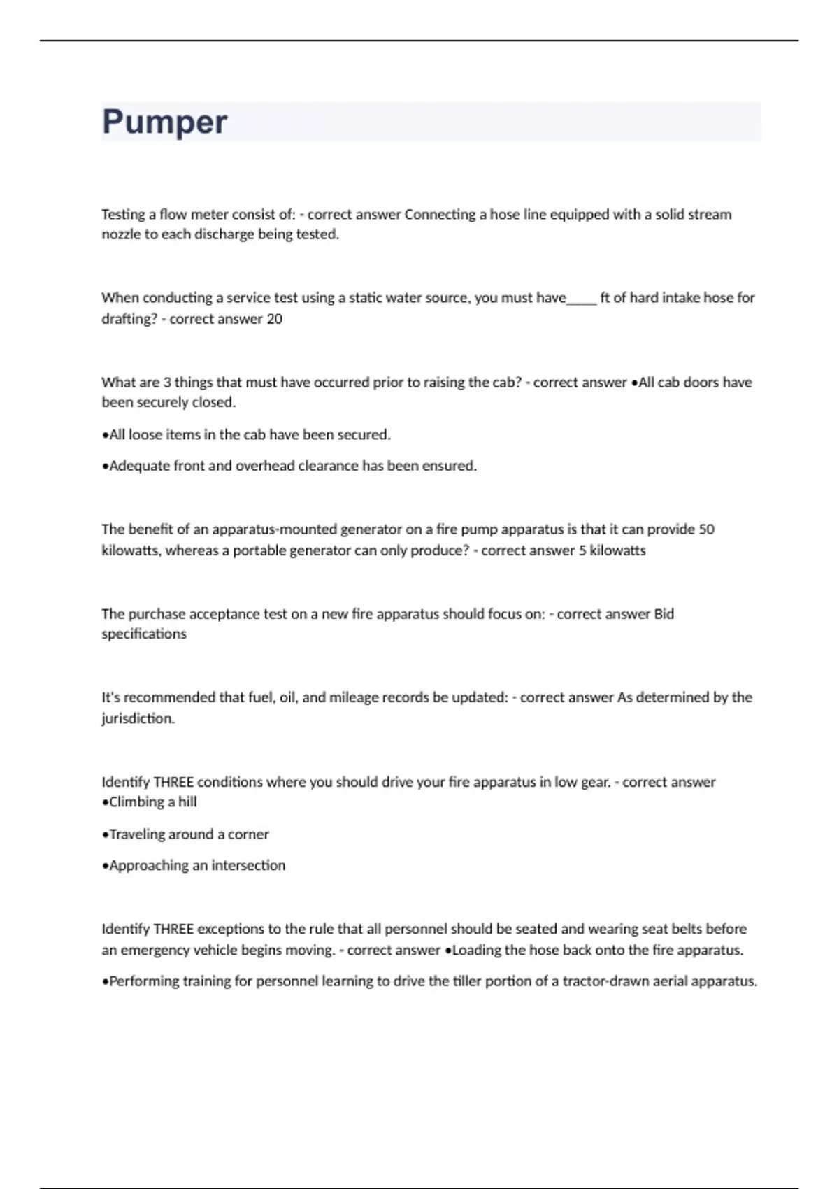 Pumper question n answers graded A+ 2023