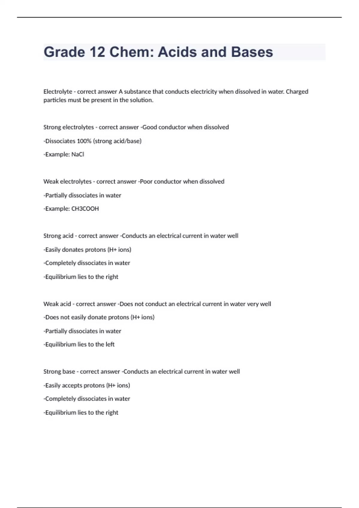 Grade 12 Chem Acids and Bases question n answers graded A+ 2023