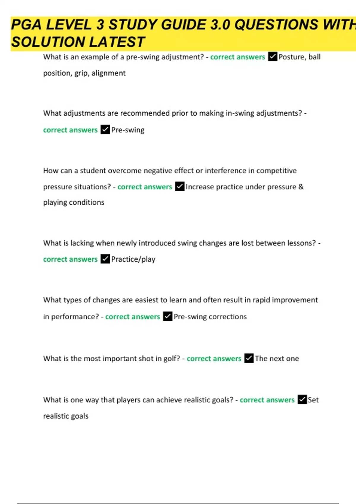 PGA Level 3 Study Guide - 3.0 Questions with Solutions (Latest )