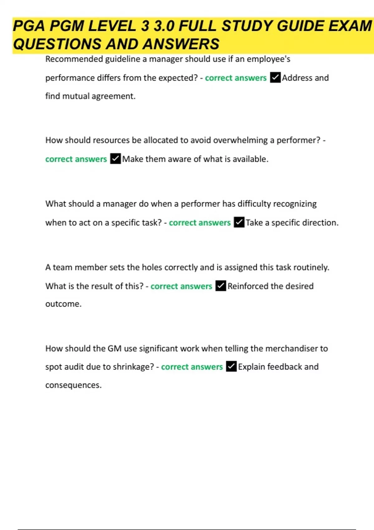 PGA PGM Level 3 3.0 Full Study Guide Exam Questions and answers (solved) 2023.