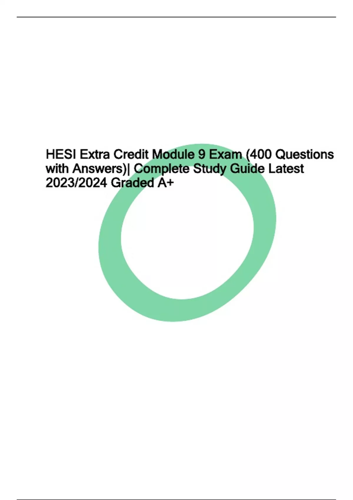 HESI Extra Credit Module 9 Exam (400 Questions with Answers)| Complete Study Guide Latest 2023/2024 Graded A+