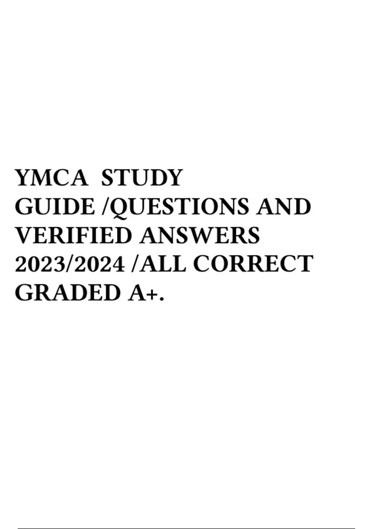 YMCA STUDY GUIDE /QUESTIONS AND VERIFIED ANSWERS 2023/2024 /ALL CORRECT GRADED A+. YMCA STUDY GUIDE /QUESTIONS AND VERIFIED ANSWERS 2023/2024 /ALL CORRECT GRADED A+. YMCA STUDY GUIDE /QUESTIONS AND VERIFIED ANSWERS 2023/2024 /ALL CORRECT GRADED A+.