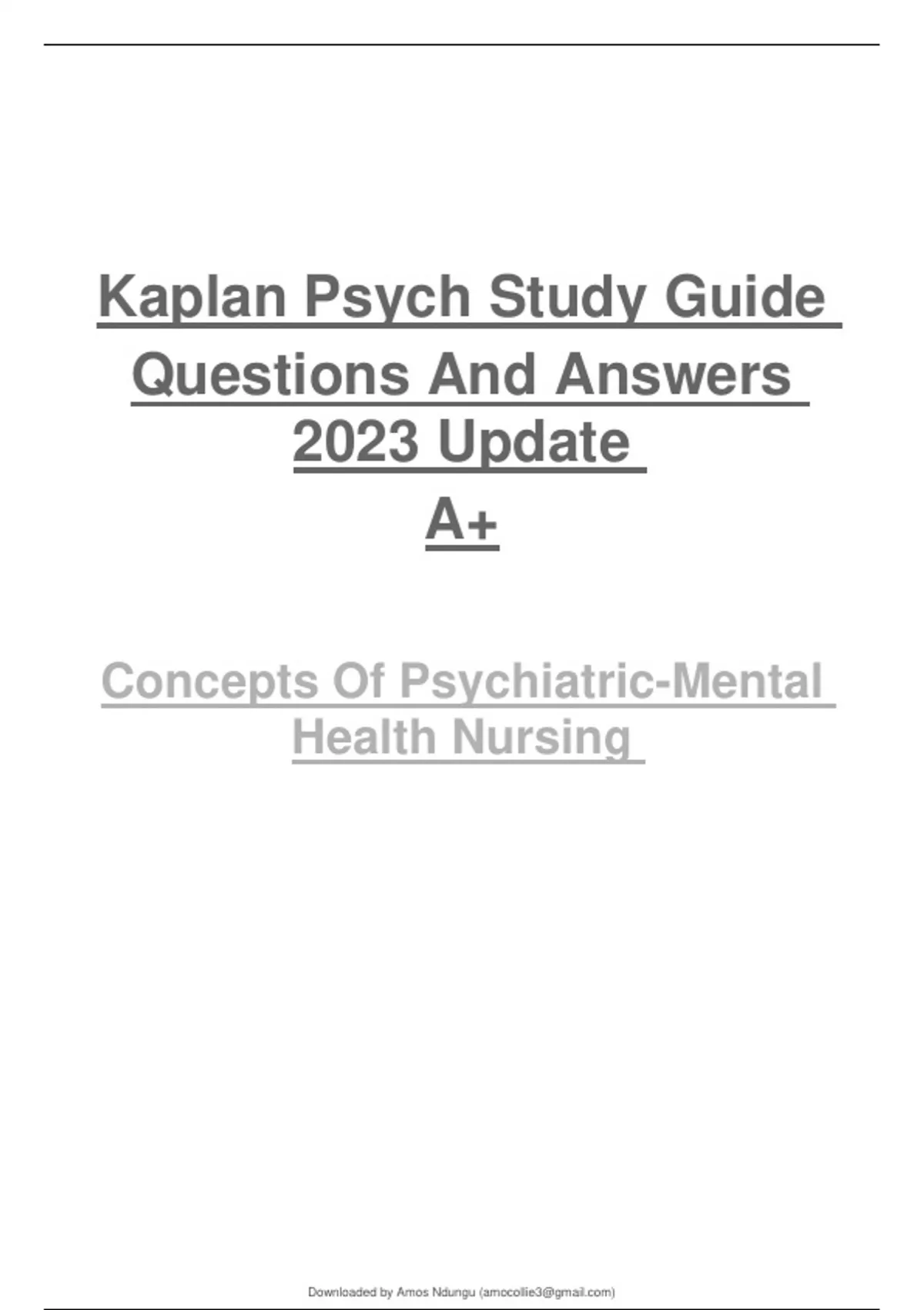 Concepts Of Psychiatric-Mental Health Nursing Questions And Answers 2023 A+