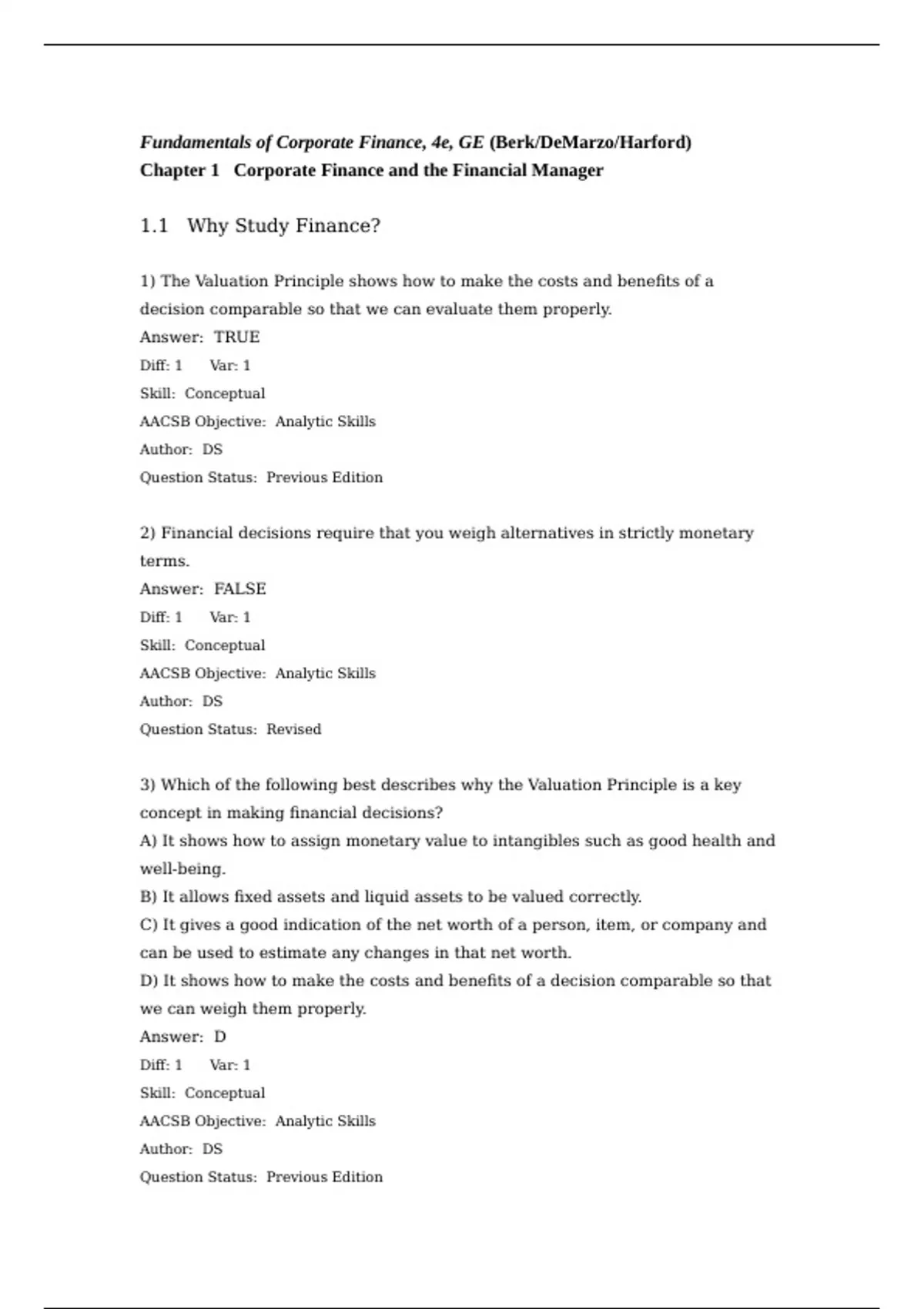 Test Bank Fundamentals of Corporate Finance, 5th Global Edition Jonathan Berk