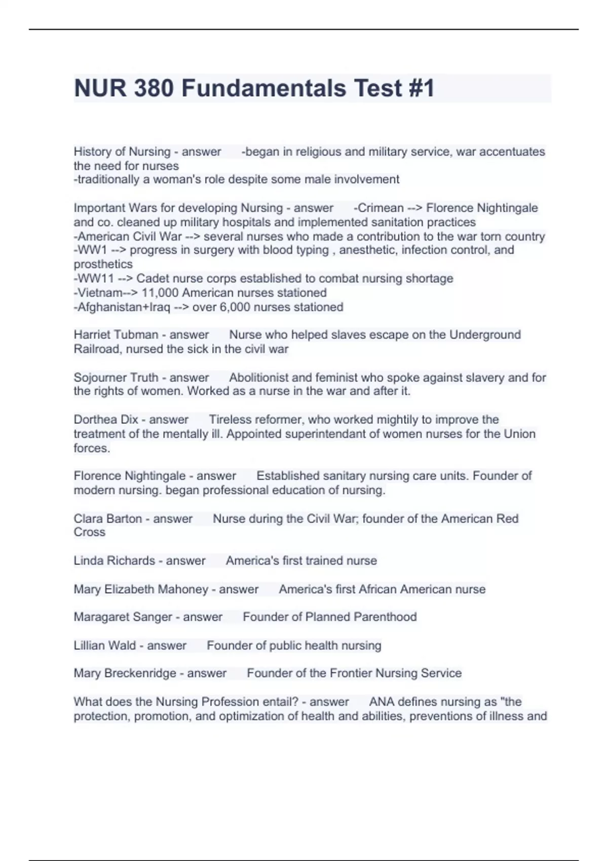 NUR 380 Fundamentals Test Questions with correct Answers 2023