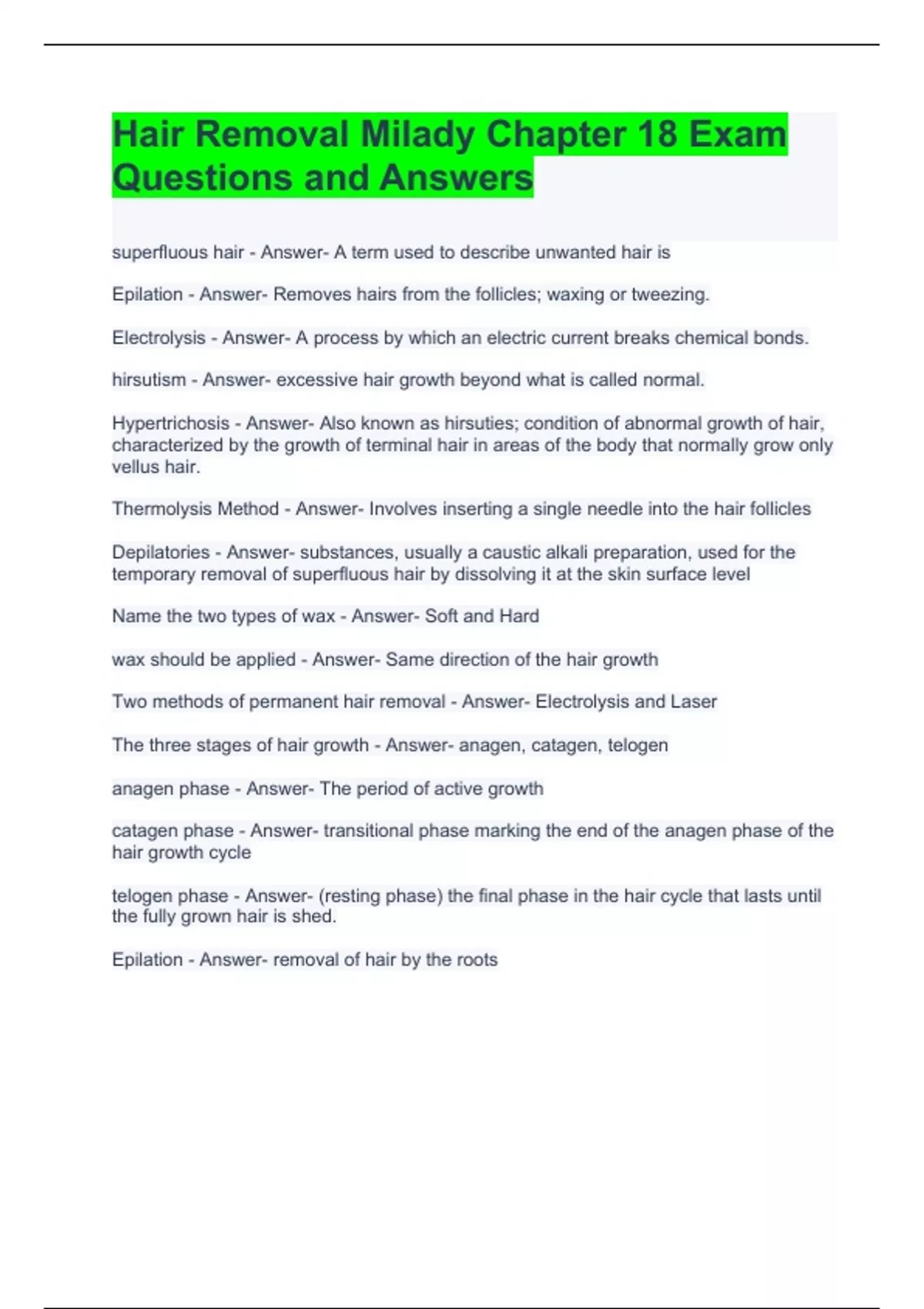 Hair Removal Milady Chapter 18 Exam Questions and Answers