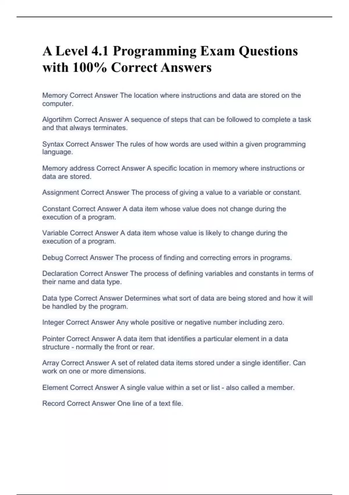 A Level 4.1 Programming Exam Questions with 100% Correct Answers