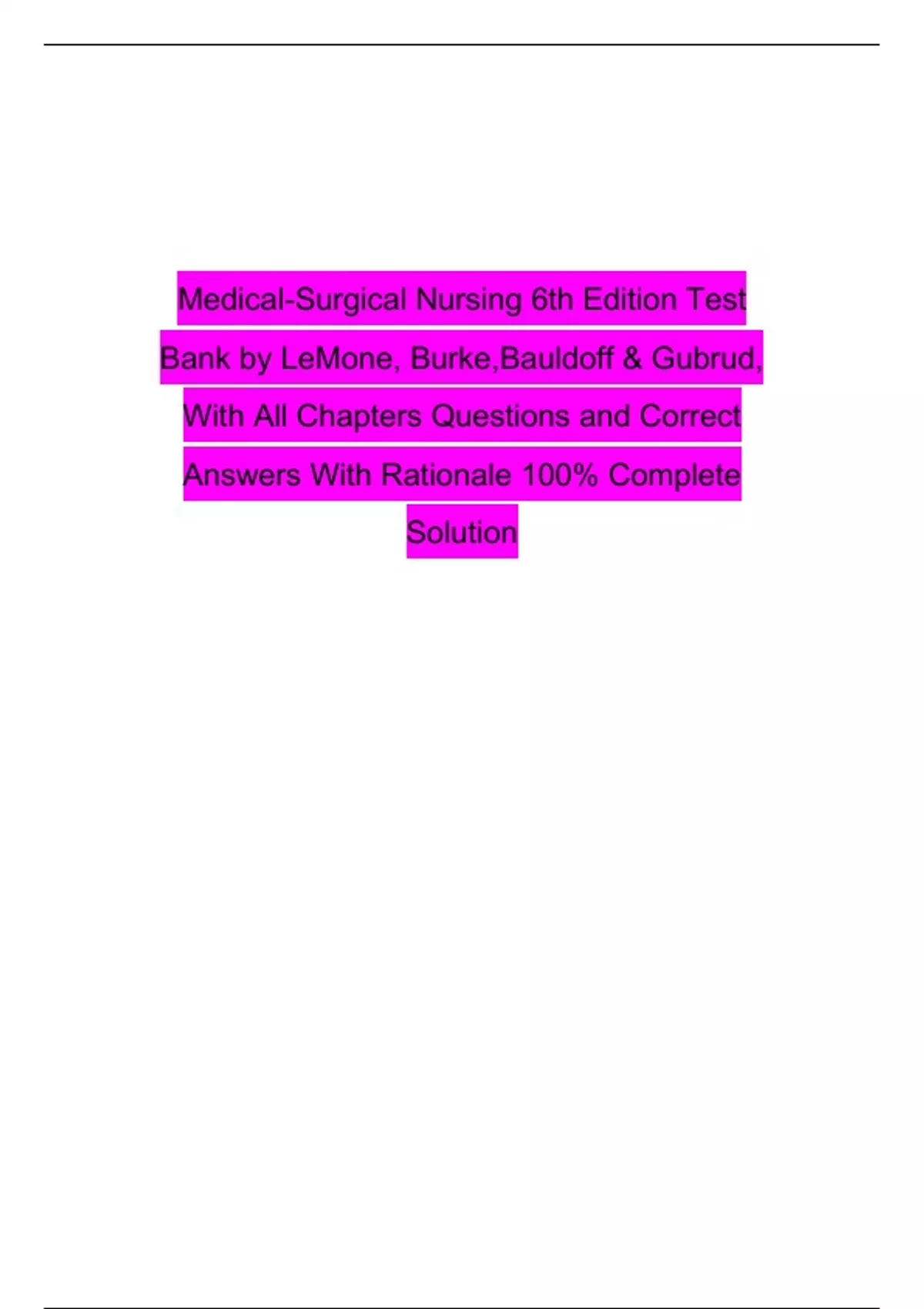 Medical-Surgical Nursing 6th Edition Test Bank by LeMone, Burke,Bauldoff & Gubrud, With All Chapters Questions and Correct Answers With Rationale 100% Complete Solution