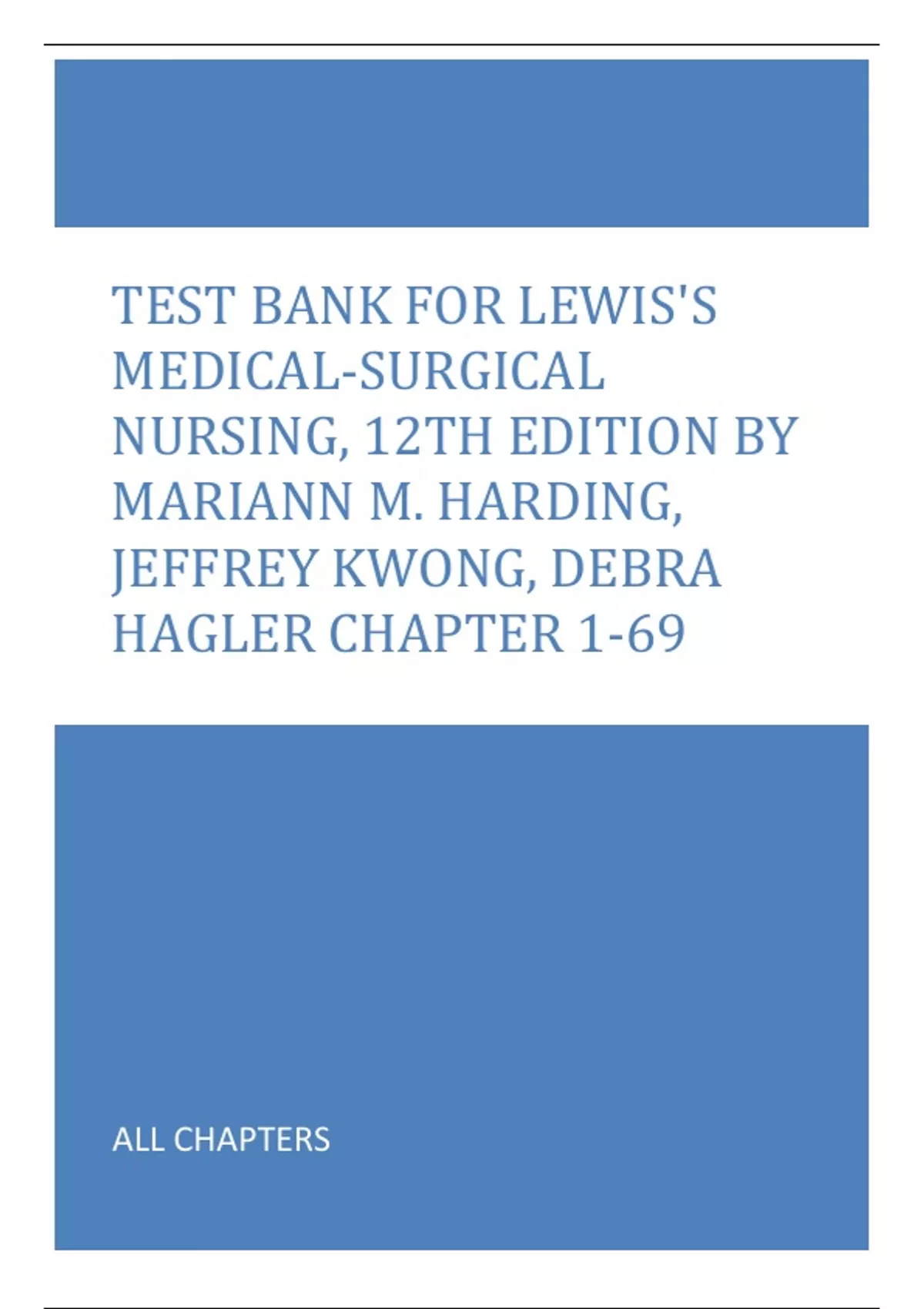 Test Bank For Lewis's Medical-Surgical Nursing, 12th Edition by Mariann M. Harding, Jeffrey Kwong, Debra Hagler Chapter 1-69