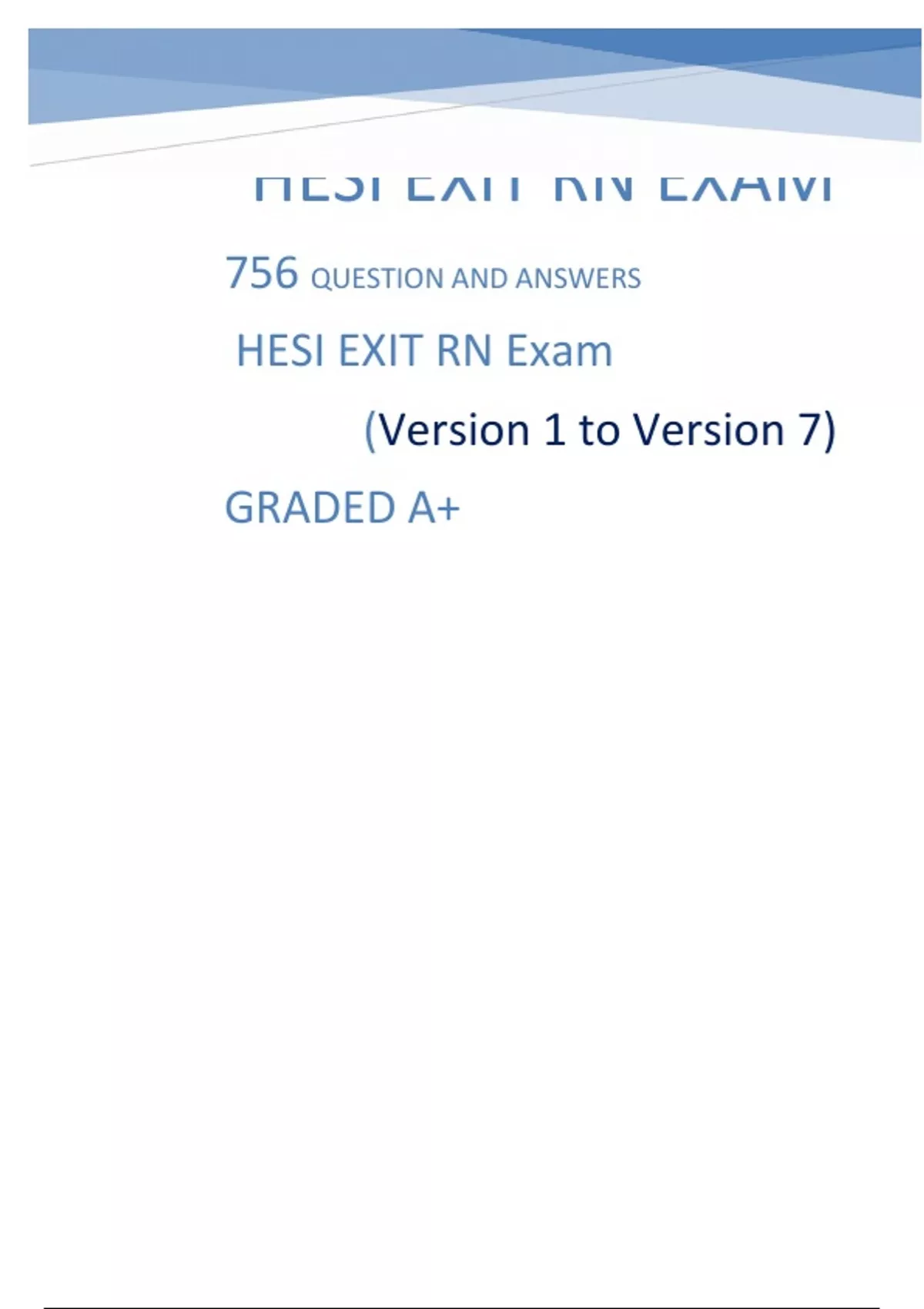 HESI EXIT RN EXAM 2023/ 2024 750+ Questions And Answers graded A+ HESI EXIT RN EXAM 2023/ 2024 750+ Questions And Answers graded A+ HESI EXIT RN EXAM 2023/ 2024 750+ Questions And Answers graded A+