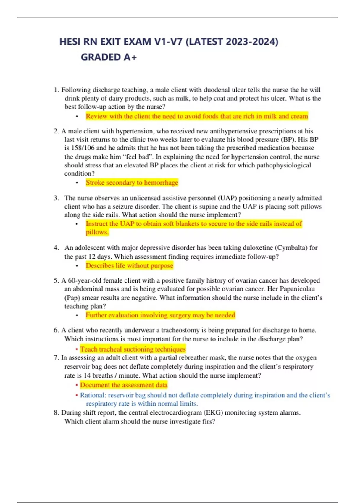 HESI RN EXIT EXAM V1, V2, V3, V4, V5, V6, V7 LATEST 2023/ 2024 HESI RN EXIT EXAM V1, V2, V3, V4, V5, V6, V7 LATEST 2023/ 2024 HESI RN EXIT EXAM V1, V2, V3, V4, V5, V6, V7 LATEST 2023/ 2024