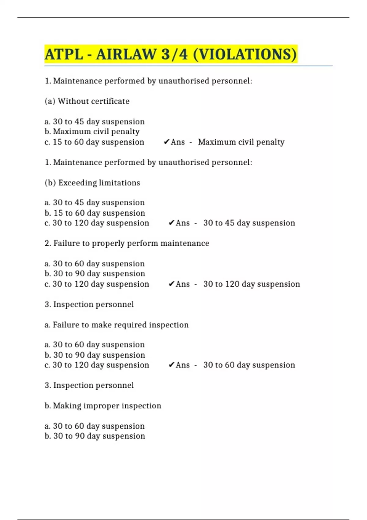 ATPL - AIRLAW 3/4 (VIOLATIONS)