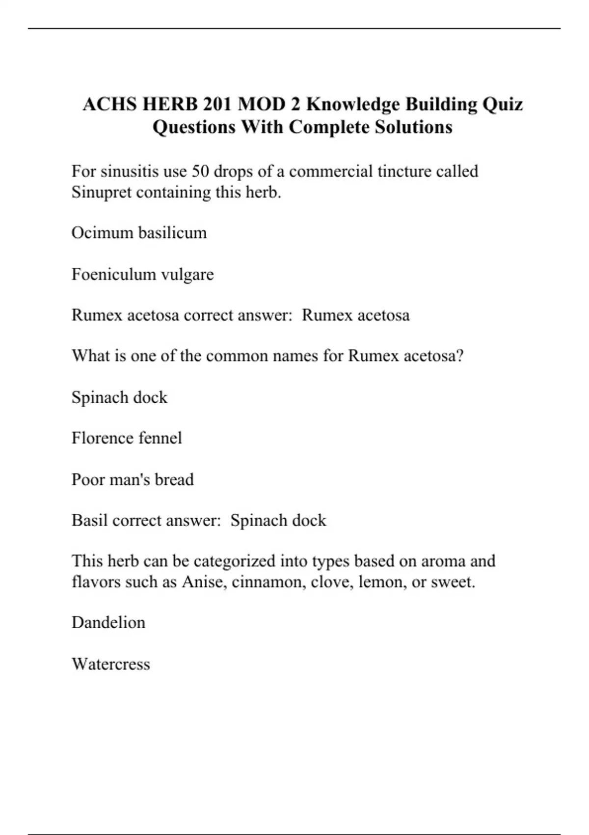 ACHS HERB 201 MOD 2 Knowledge Building Quiz Questions With Complete Solutions