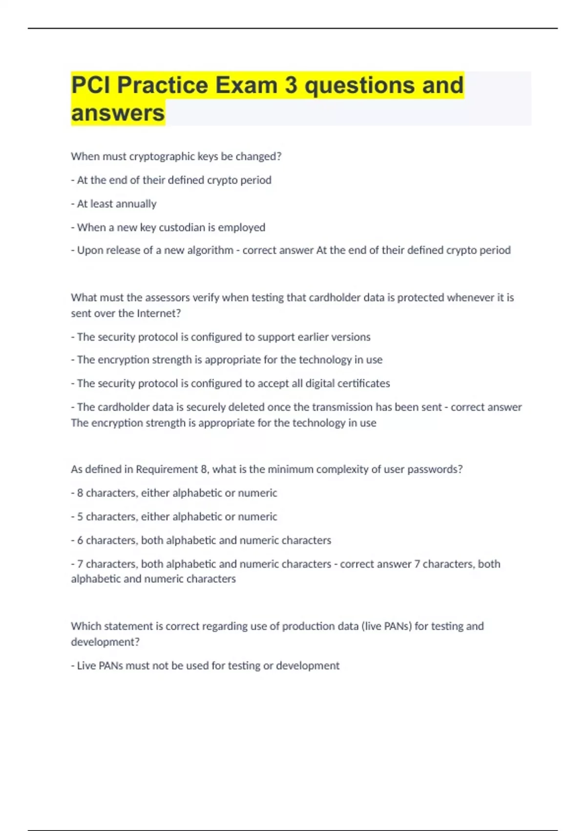 pci practice exam 3 questions and answers