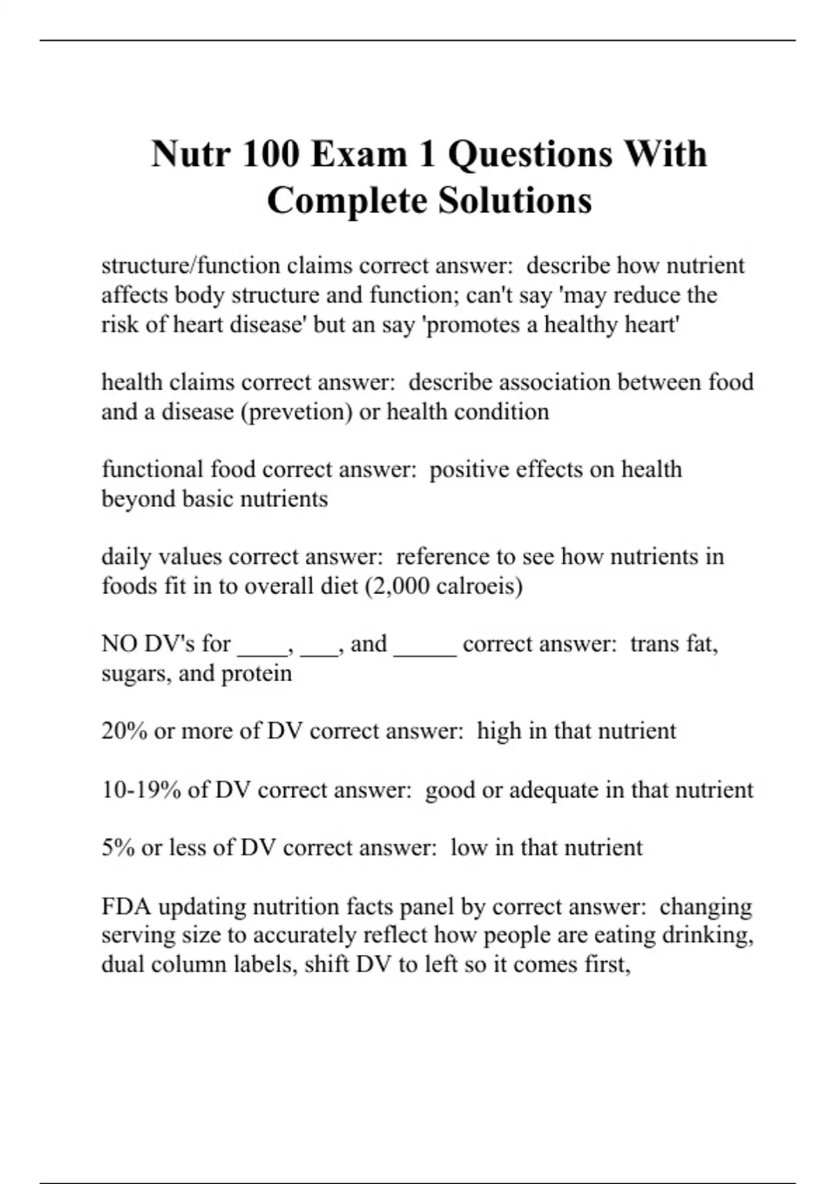Nutr 100 Exam 1 Questions With Complete Solutions.