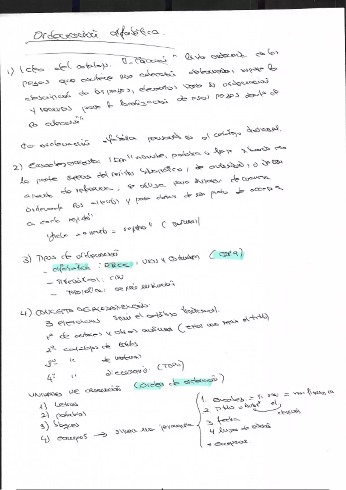 Ordenación alfabética de autor, titulo y materia. Teoría y ejemplos