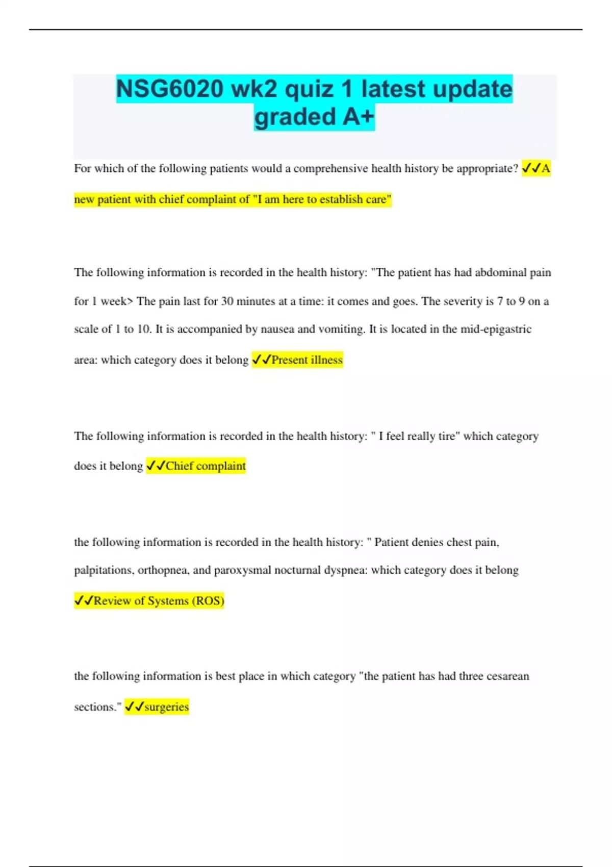 NSG6020 wk2 quiz 1 latest update graded A+