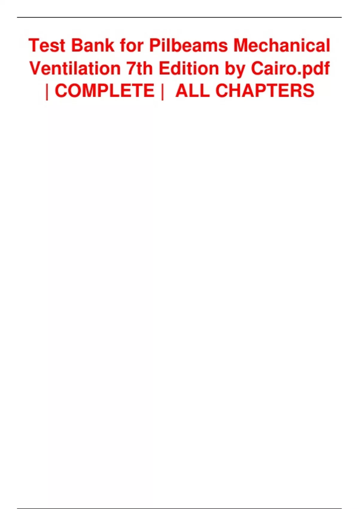 Test Bank for Pilbeams Mechanical Ventilation 7th Edition by Cairo| Complete Instant Download verified