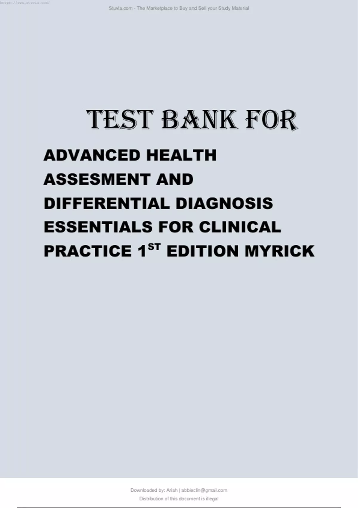 TEST BANK FOR ADVANCED HEALTH ASSESMENT AND DIFFERENTIAL DIAGNOSIS ESSENTIALS FOR CLINICAL PRACTICE 1ST EDITION MYRICK.