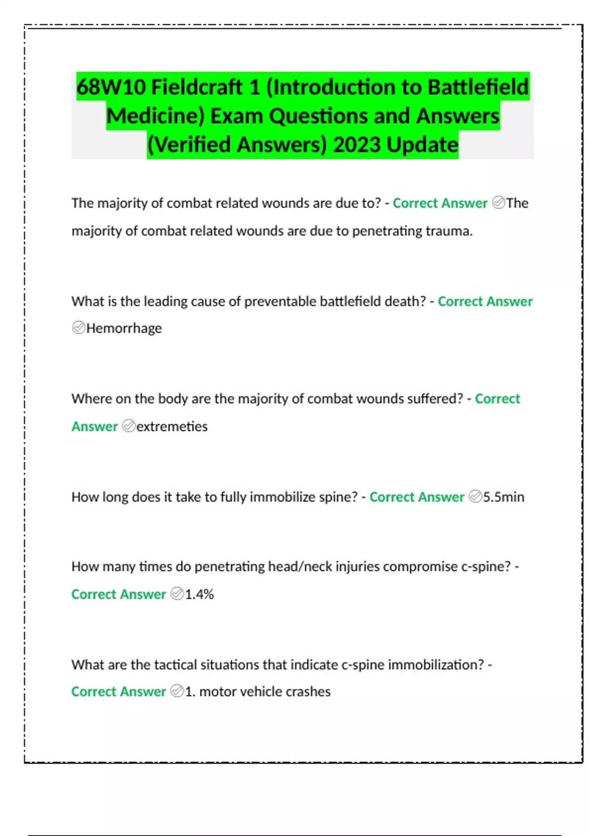 68W10 Fieldcraft 1 (Introduction to Battlefield Medicine) Exam Questions and Answers (Verified Answers) 2023 Update68W10 Fieldcraft 1 (Introduction to Battlefield Medicine) Exam Questions and Answers (Verified Answers) 2023 Update