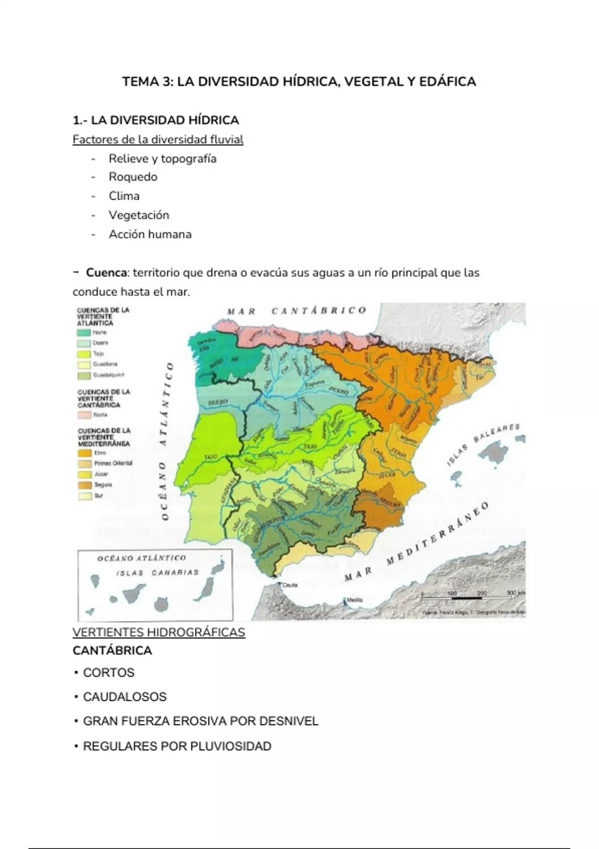 TEMA 3: LA DIVERSIDAD HÍDRICA, VEGETAL Y EDÁFICA