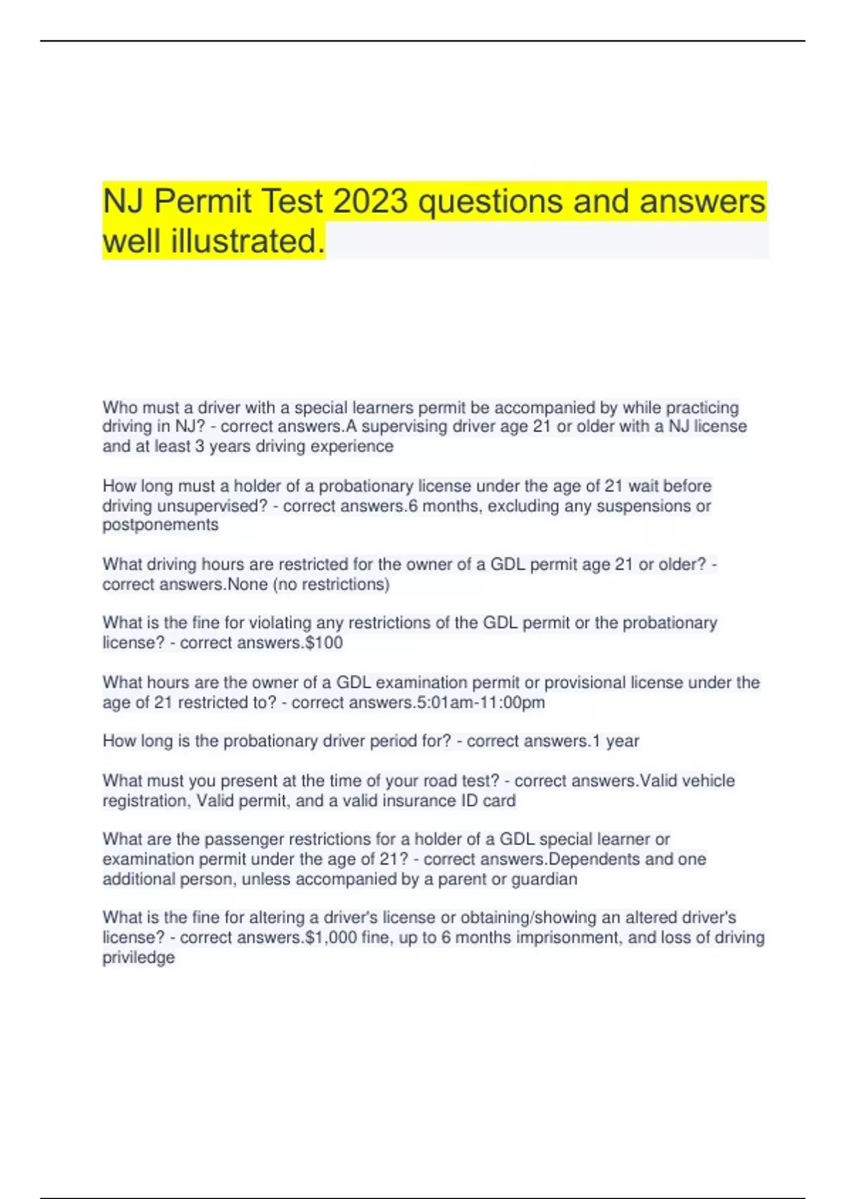 NJ Permit Test 2023 questions and answers well illustrated.