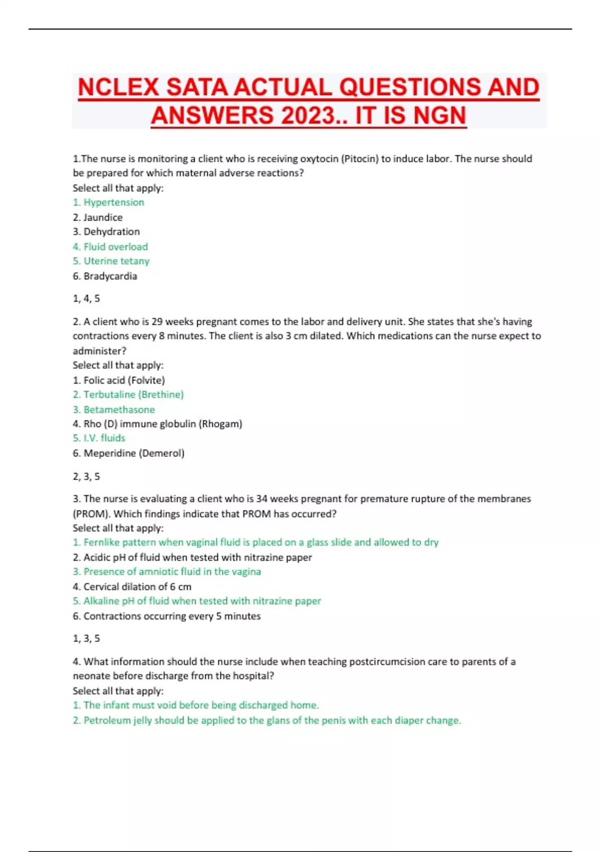 NCLEX SATA ACTUAL QUESTIONS AND ANSWERS 2023.. IT IS NGN