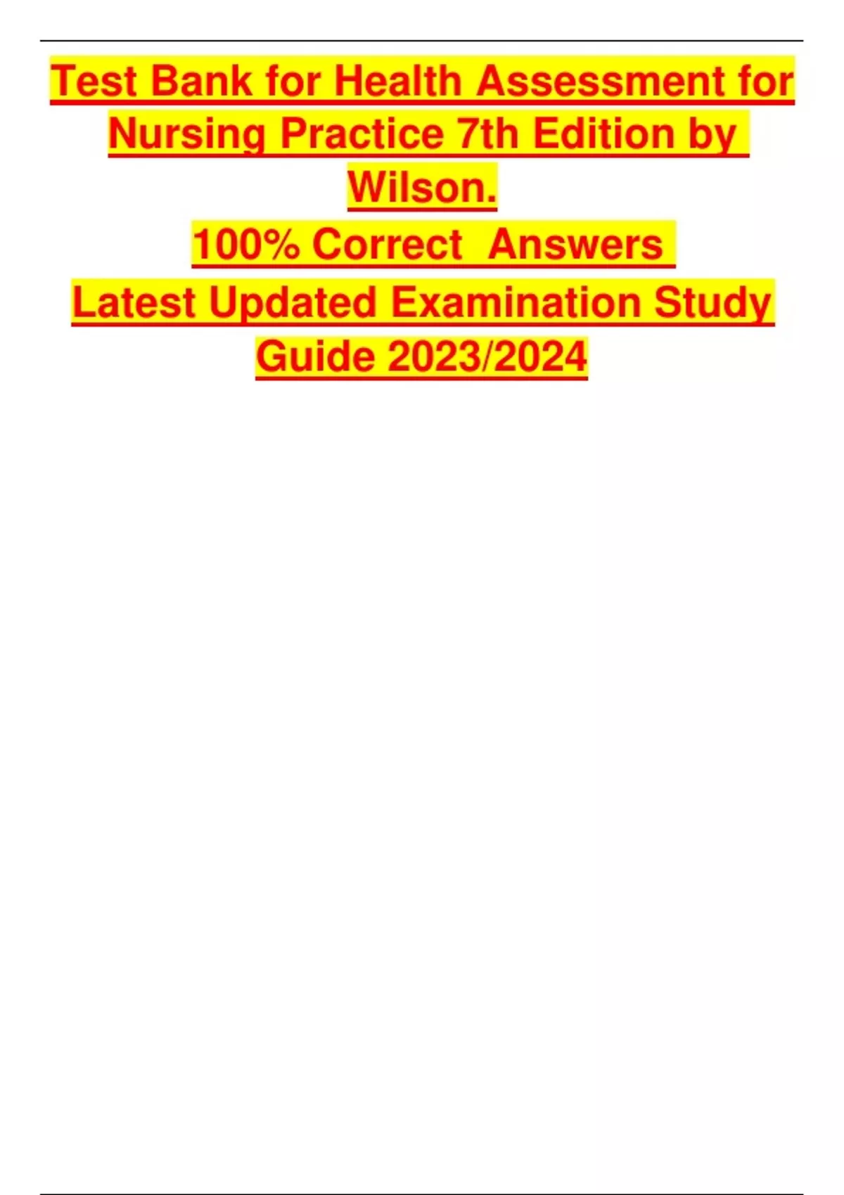 Test Bank for Health Assessment for Nursing Practice 7th Edition by Wilson. 100% Correct Answers Latest Updated Examination Study Guide 2023/2024