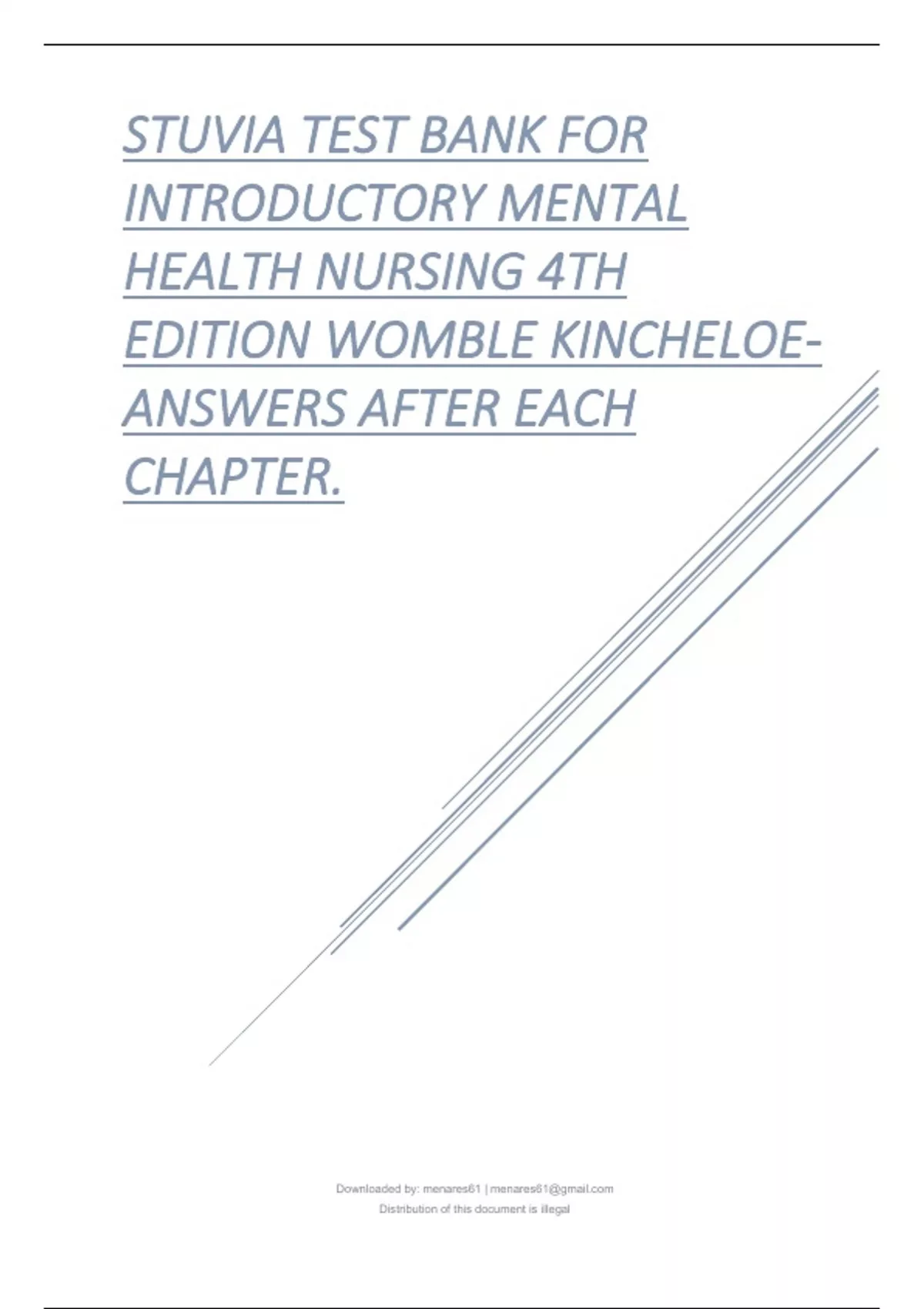 TEST BANK FOR INTRODUCTORY MENTAL HEALTH NURSING 4TH EDITION WOMBLE KINCHELOE-ANSWERS AFTER EACH CHAPTER..pdf
